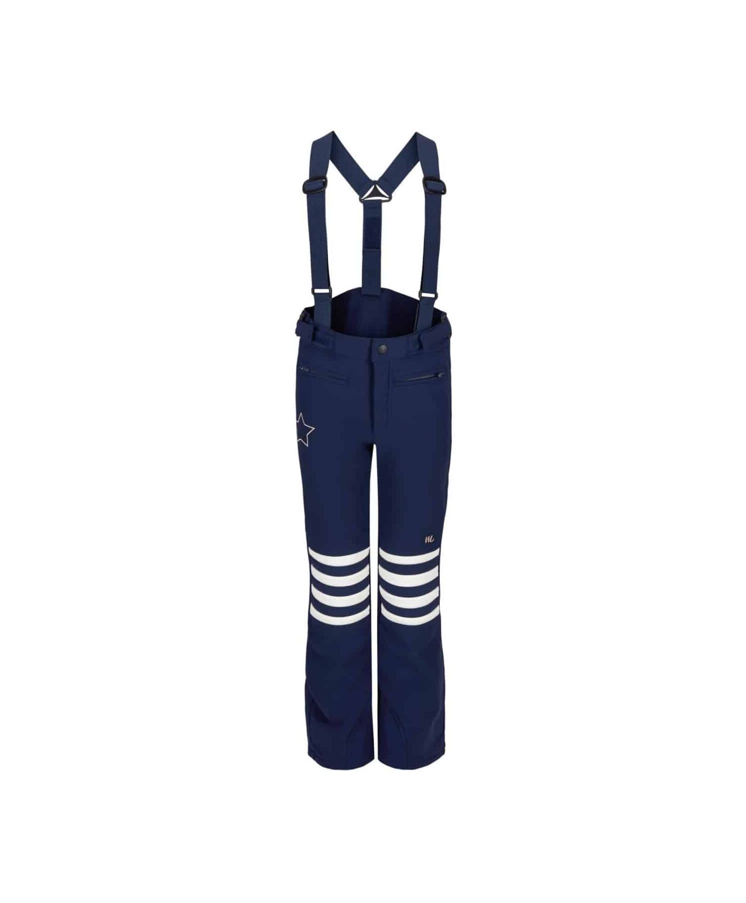 Bootcut og høyt liv gjør at denne buksen passer godt til å ha over store støvler. Buksen har avtagbare seler. Skibuksen er laget i et mykt, pustende, fukttransporterende materiale, med børstet fleece på innsiden. Buksen er slitesterk, vindtett og vannavvisende (vannsøyle på 10.000 mm). Lommer foran, justerbar livvidde med borrelås og justerbare seler. Glidelås nederst på benet for ekstra vidde slik at det er lett å få skibuksen over alpinstøvlene med snøfangere under. Hvite striper over knær.