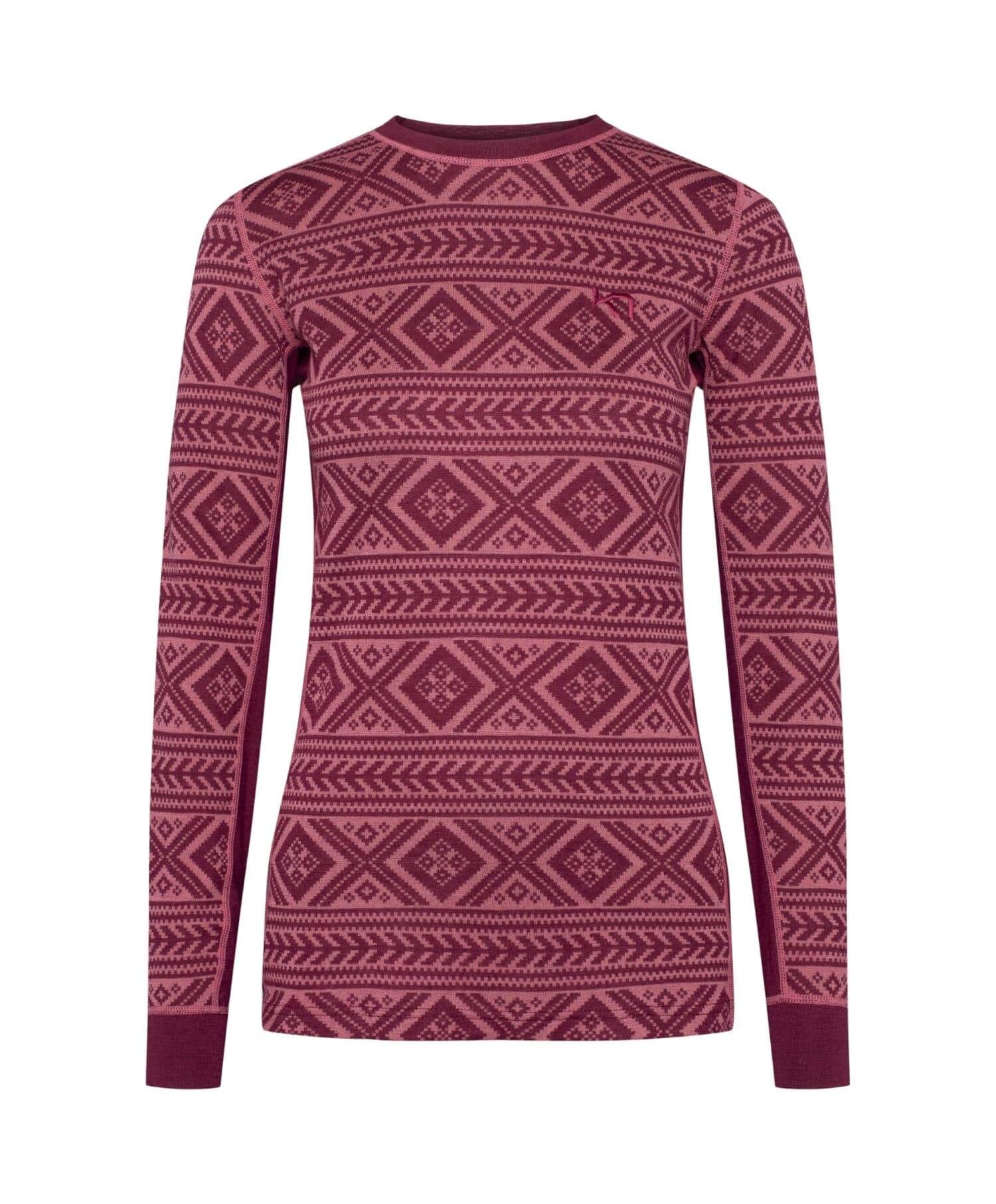 Kari Traa Floke langarmet ulltrøye er en varm, naturlig blandet ullundertøy med et klassisk og sporty jacquard strikket mønster. \n