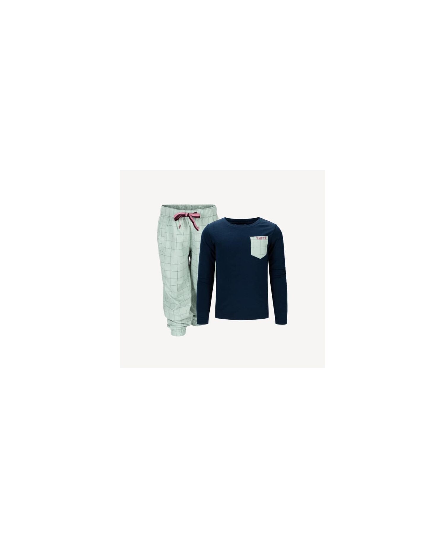Kle barna i denne komfortable pyjamasen fra Tufte og de vil bli glade og fornøyde. Et perfekt antrekk for hverdagsfrokost i morgentimene eller en lat søndag med familien. En supermyk blanding av bambusviskose og økologisk bomull, med litt elastan i genseren for utrolig komfort uansett hvordan barna sover.\n\nPysjen kommer i en fin-fin konvolutt laget av resirkulert polyester. Denne er såpass fin at den mer enn gjerne kan gjenbrukes for oppbevaring av tegninger, tegneserier, bilder eller andre fine skatter. Pysj er en perfekt gave til barn som har alt.