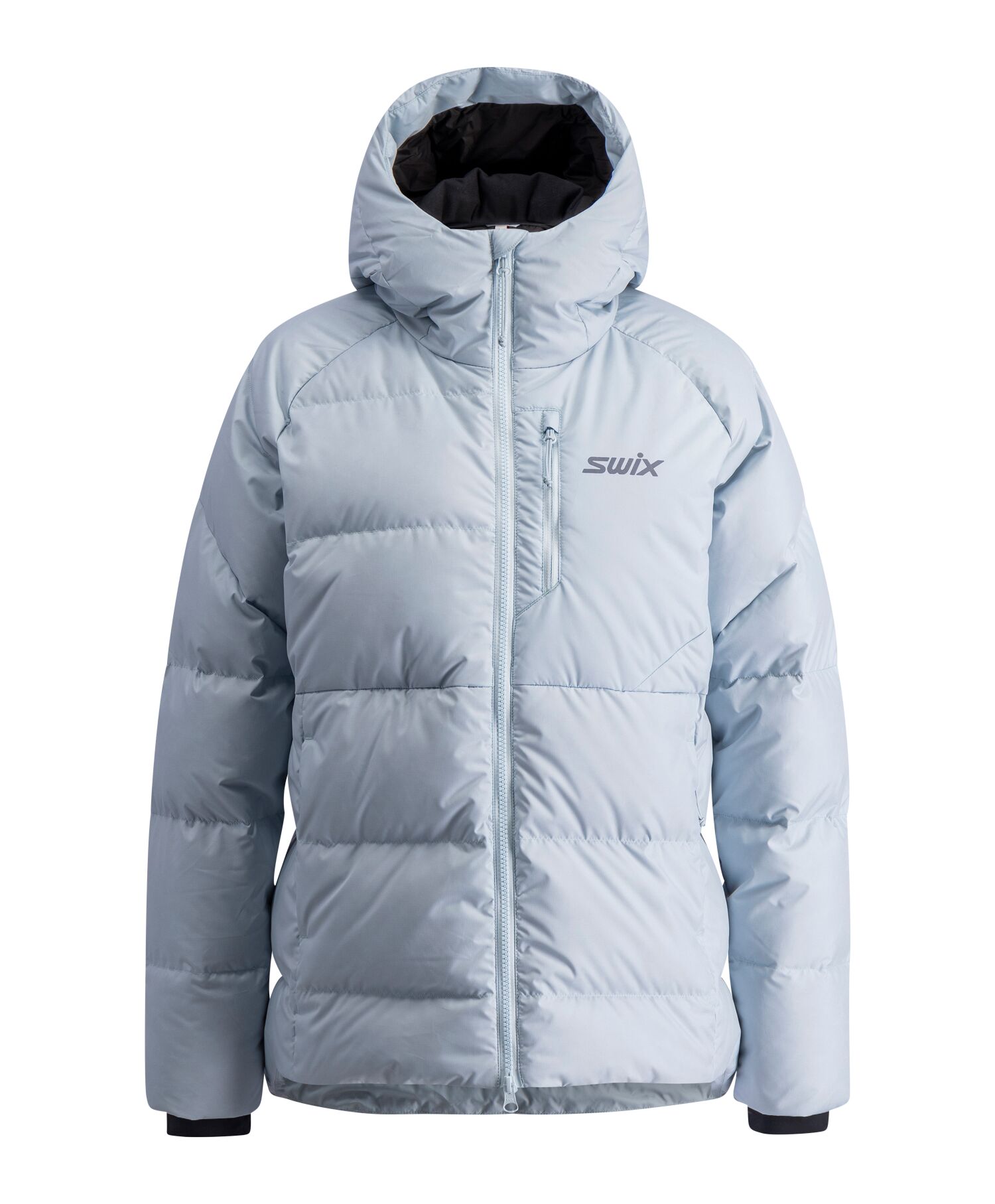 Focus Down Jacket er den varme dunjakken utviklet med kjærlighet for vinteren og langrenn - perfekt for lag-på-lag bruk under oppvarming eller for å holde deg varm ved løypene. Laget med slitesterke, resirkulerte materialer - også dunfyllet er resirkulert - med 650 fill power. Den buede nederkanten, hetten som dekker godt og de tettsittende mansjettene holder deg beskyttet mot kulden. Den har en normal passform som tillater lag-på-lag bekledning og gir fortsatt plass til isolerende luft.