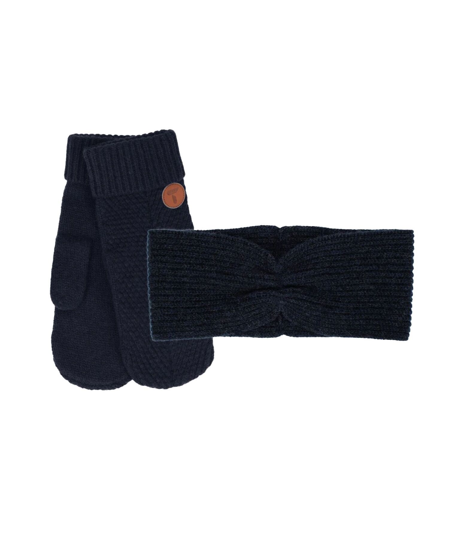 Pannebåndet er laget av en miks av superfin merinoull og myk bambusviskose, så du kan holde hodet varmt og komfortabelt i de kalde vintermånedene. Et par strikkavotter laget av lammeull vil holde hendene gode og varme. Vottene er dekorert i et delikat fiskebensmønster med en oppbrettet kant rundt håndleddene.