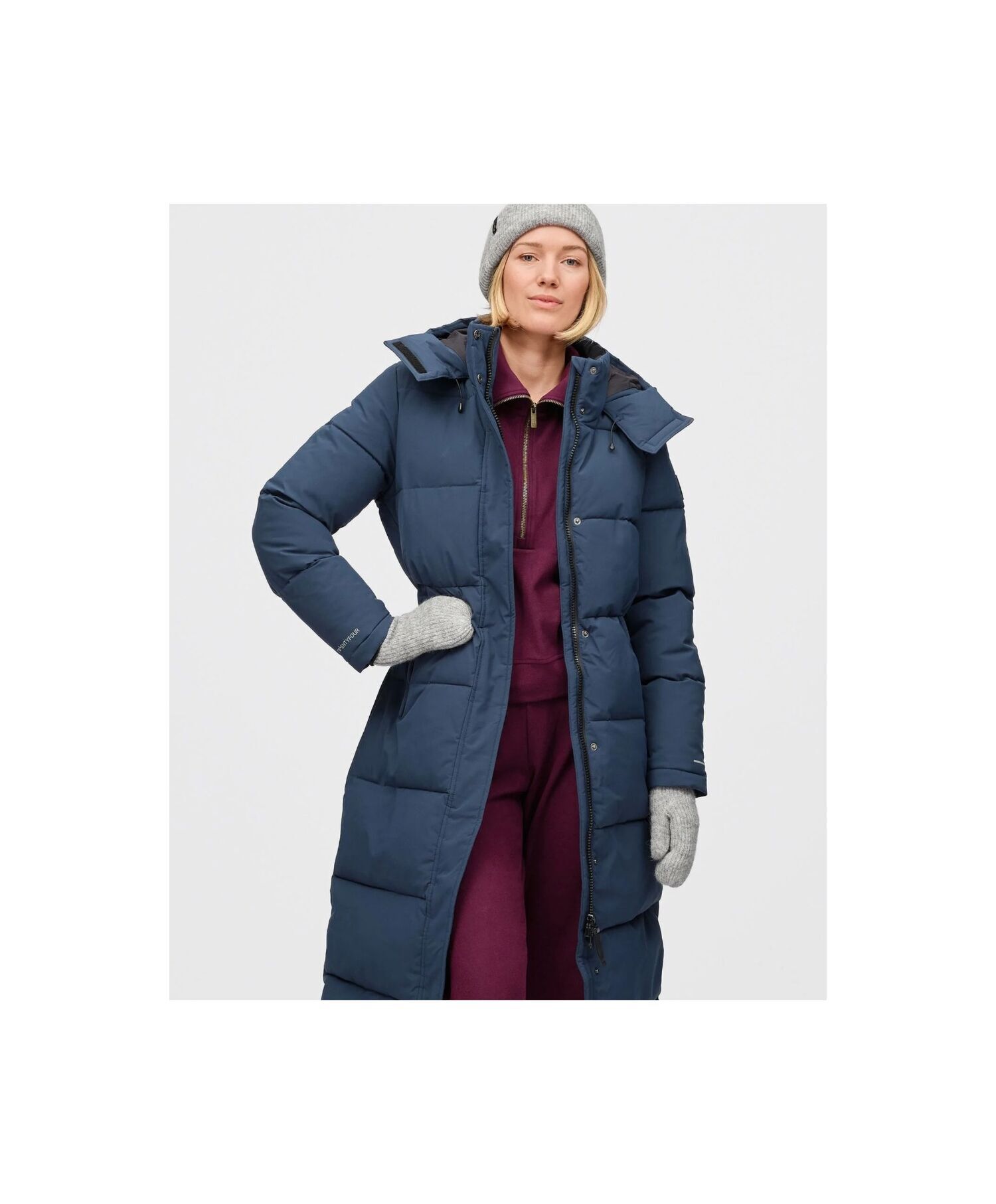 En lang parkas med fast hette i mykt og matt materiale. Den er fylt med et resirkulert og løst fyll som gir en veldig lett og varm vattering. Frontklaff med trykknappelukking og glidelås under, samt sidelommer med glidelås og klaff. Mansjetter og innerkrage i myk rib. Parkasen har stramming i livet og på hette for den beste passform, samt god lengde så du holder varmen på kalde dager.  Dette er en perfekt jakke å ha i garderoben. UNIFI REPREVE© VATTERING: 100% resirkulert isolasjon produsert av plastflasker.