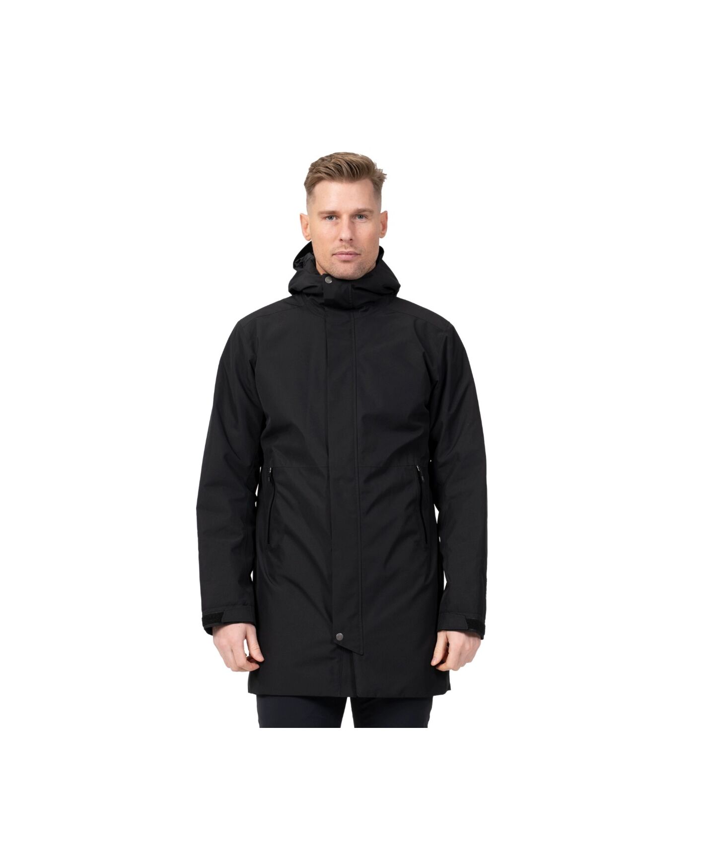 Ytterligere funksjoner: Borrelåsjustering på ermene. Frontklaff med trykknapper.